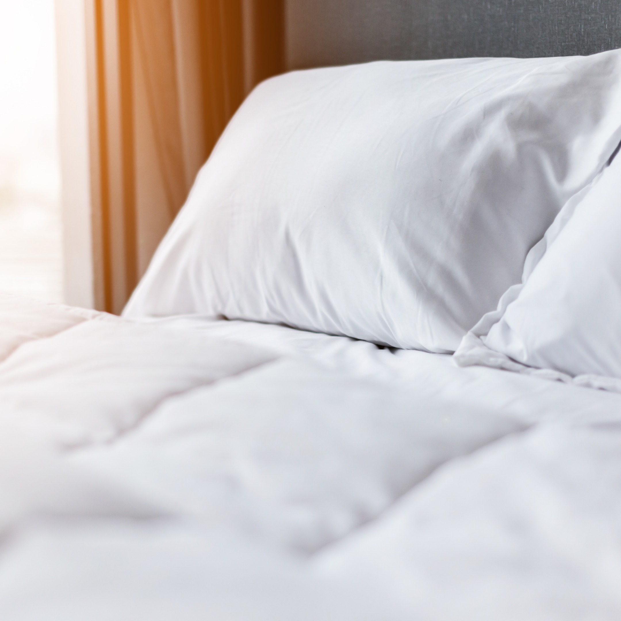 Are you looking to upgrade your room, but suffer from allergies from feather and down bedding? The Envirosleep Hypoallergenic Luxury Suite Package might be the perfect bedding collection for you. This package includes the Tempo Duvet Comforter, a Dream Surrender and a Dream Surrender Firm pillow set, and 2 pillow protectors. The Tempo Duvet Comforter is a light down alternative comforter that is perfect for summer sleeping. These comforters are made by the popular manufacturer, Sysco Guest Supply. The pillows in this package will give you 2 different support levels. The Sysco Guest Supply Envirosleep Dream Surrender pillow is filled with lofty and supportive polyester clusters. These medium support pillows are great for side and back sleepers. The second pillow in this package is the Envirosleep Dream Surrender Firm pillow. This pillow has a slightly higher fill of polyester clusters that makes it perfect for side sleepers who prefer a thicker pillow with little compression. Sleep soundly throughout the night with the Envirosleep Hypoallergenic Luxury Suite Package.