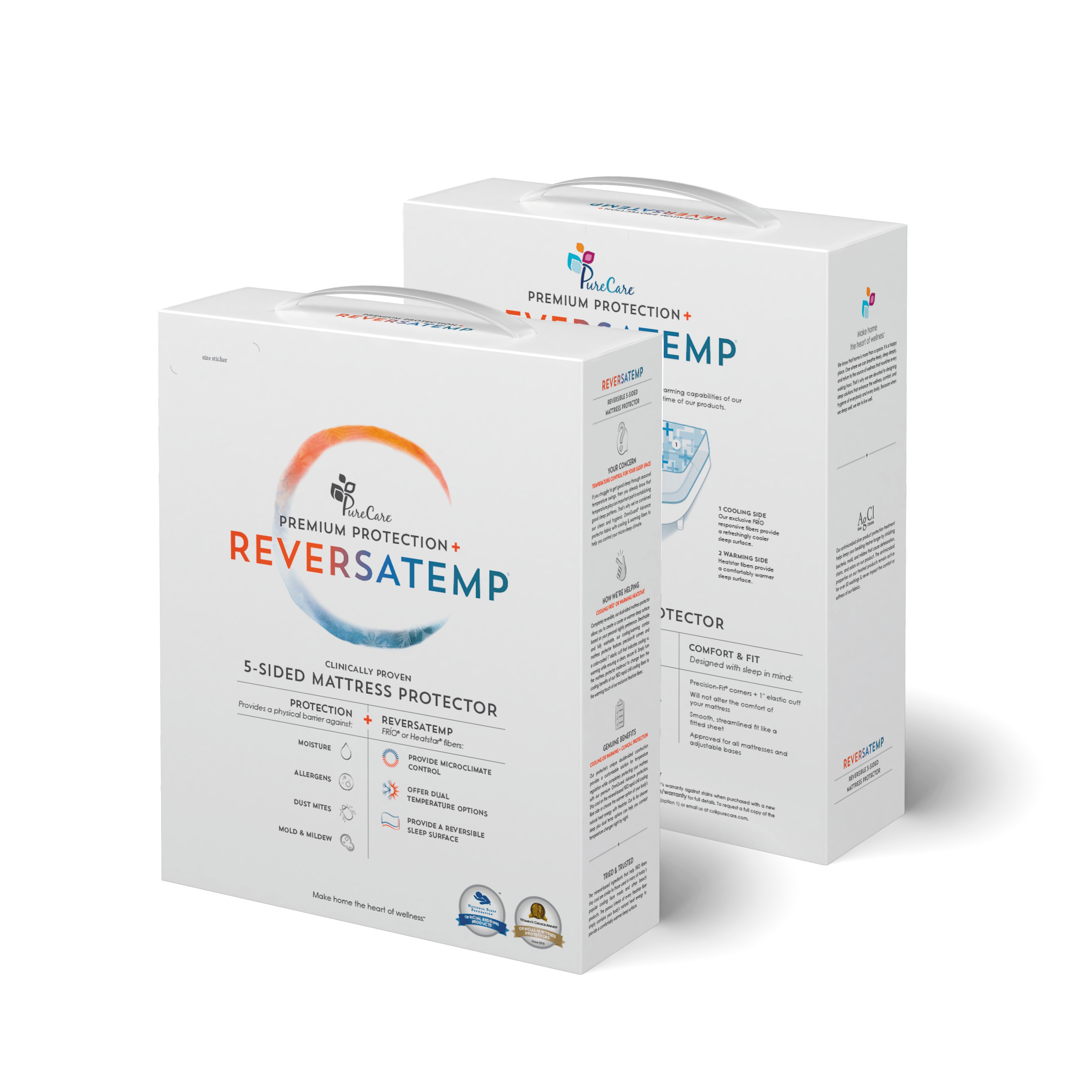 The unique, reversible design of PureCare's 2-in-1 ReversaTemp mattress protector provides a customizable solution for sleep surface temperature control while helping you create a cleaner, more hygienic sleep environment.