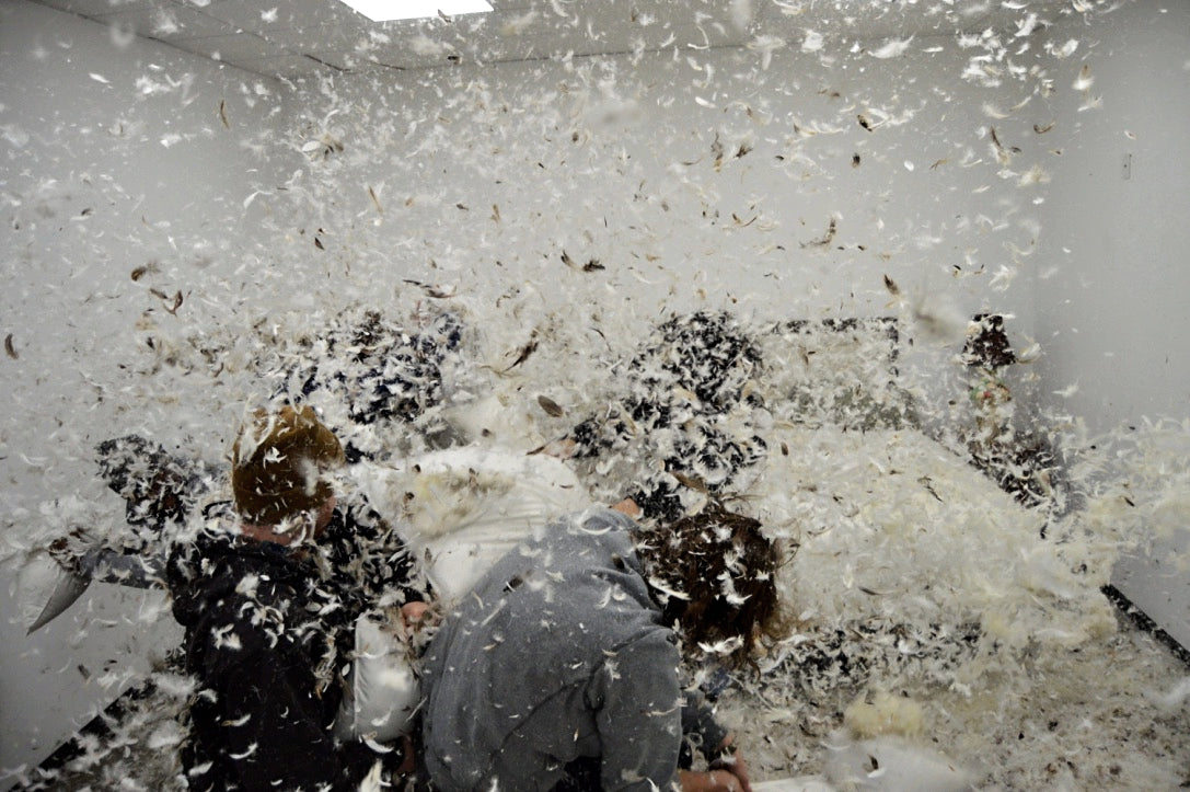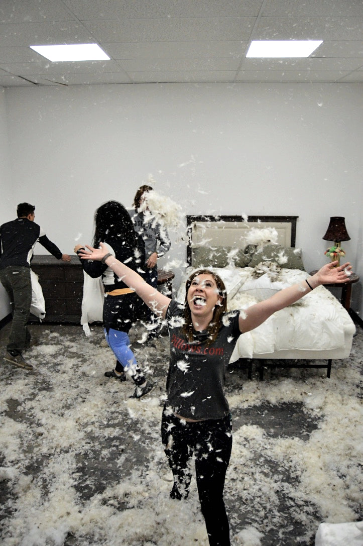 When choosing the perfect pillow for a pillow fight, you must remember to keep safety the #1 priority. We recommend choosing a polyester pillow as down/feather pillow can be quite messy. We DO NOT recommend foam pillows as these pillows are heavy and can cause injury.
